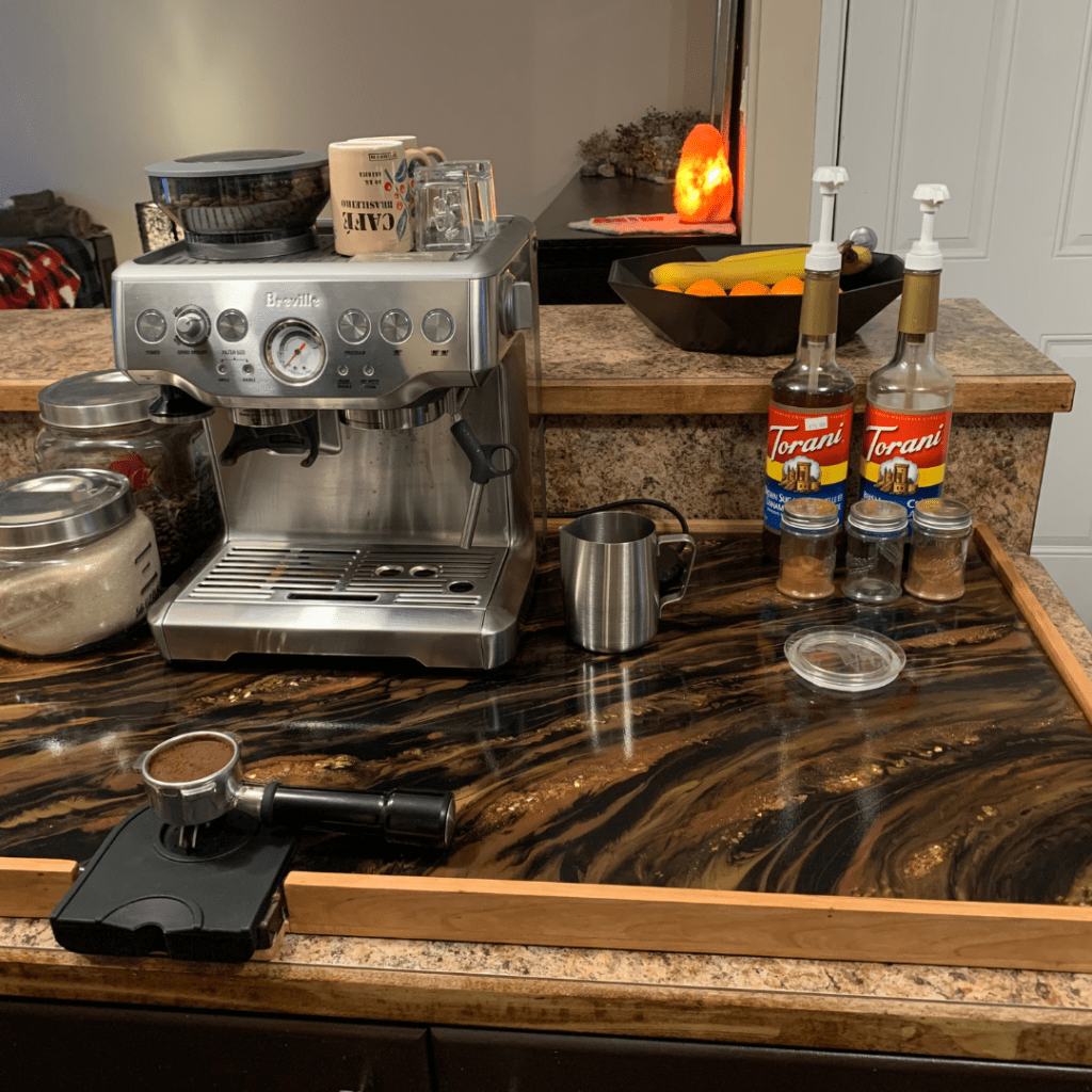 Epoxy resin surfaces are a great option for both commercial and residential use. Our process ensures that our epoxy surfaces are durable, scratch resistant, heat resistant and stain resistant. Epoxy is completely customizable to your space and style. We fabricate and finish our client projects in our own shop with colors and techniques that reflect the individual’s personal style. Every single piece is unique in its’ own right, yet highly functional and durable enough for everyday use. Epoxy countertops are seamless, waterproof and 100% food safe. Epoxy offers a unique, maintenance free, affordable option to home and business owners alike.