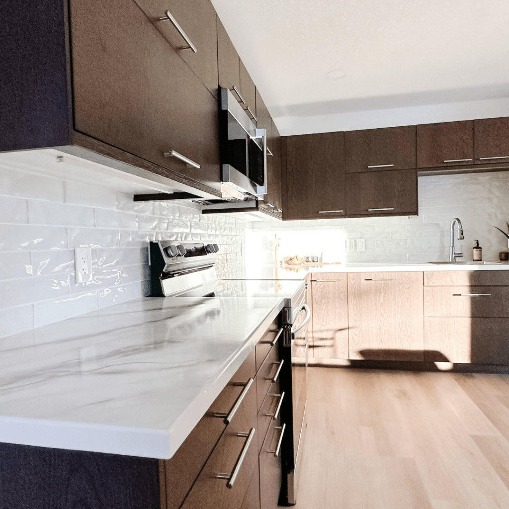 Epoxy is a perfect choice for kitchen countertops. In most cases, we can build your counter top as a seamless, single piece – no corner seams where you would typically see separation or lifting over time. We use a specialized UV resistant top coat that makes the epoxy surface durable, heat resistant, scratch resistance and maintenance free. We go one step further to protect your substrate from below by applying a waterproof membrane underneath as an added layer of protection to areas around dishwashers and sinks.